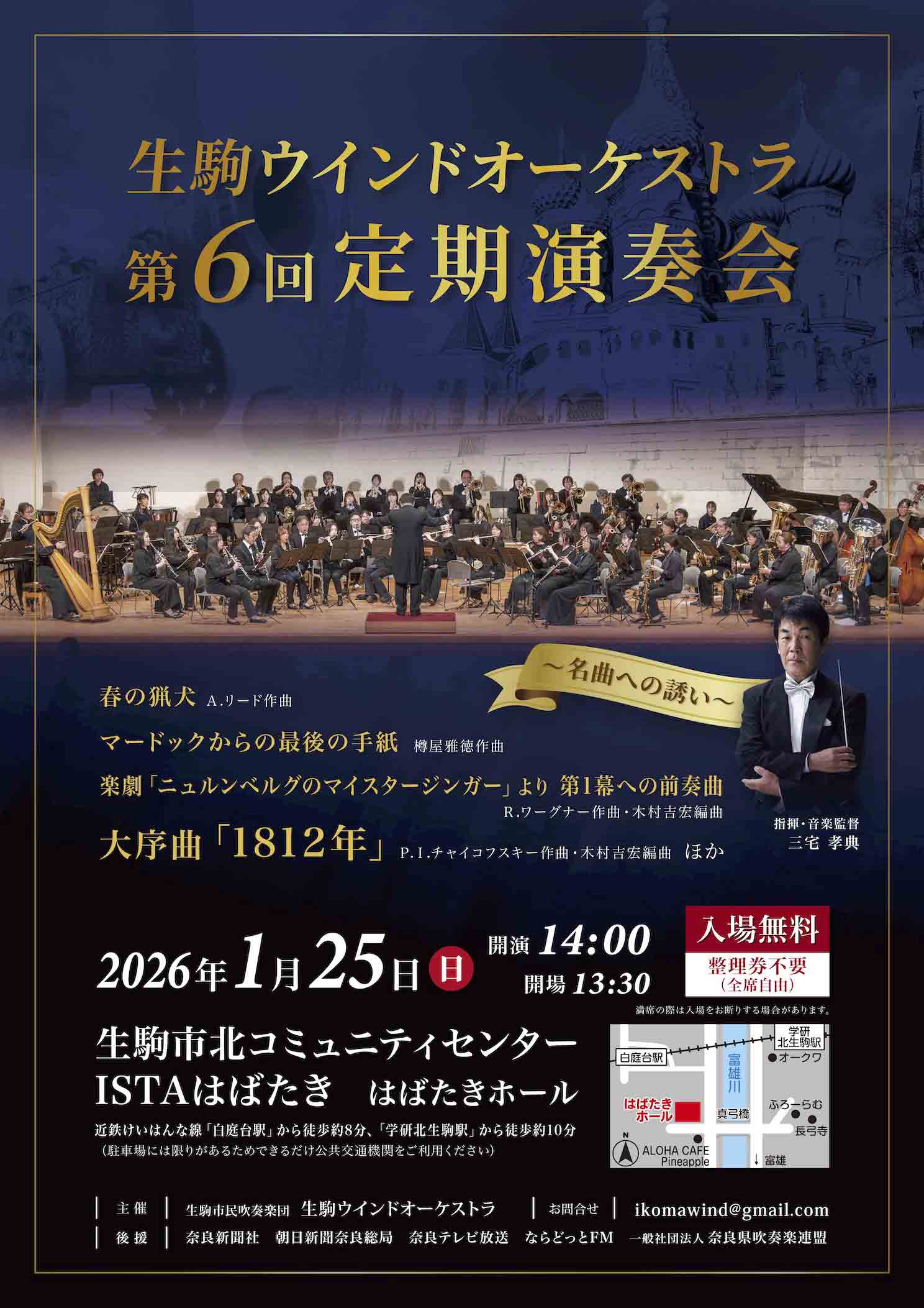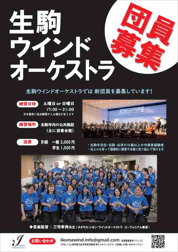| 生駒ウインドオーケストラ公式Xページです。 フォローをよろしくお願いいたします。 |